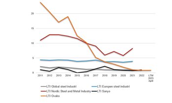 Safety first is Ovako’s philosophy for every aspect of our operations. In recent years this has led to a strong improvement in our Lost Time Injury Frequency Rate (LTIFR) that are now well below the industry average. In fact, we have reduced injuries with sick leave by 95% over the last seven years explains Phetra Ericsson EVP HR, Communication & EHS Ovako Group.