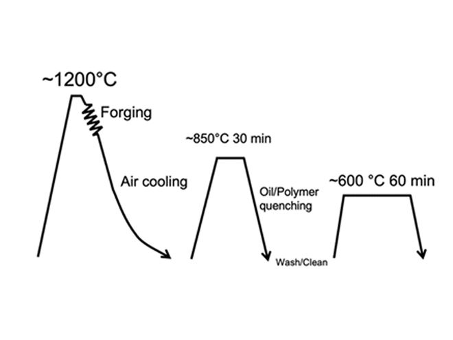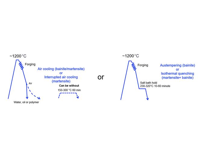 The traditional approach for the forging industry is to use reheating, quenching, and tempering stages as shown in Figure 1 to attain the ideal steel microstructure in steel components. The aim with quenched and tempered (Q&T) steel is to achieve the optimal balance of strength, ductility, and impact toughness. But what if the required properties could be achieved without these additional stages? Now they can, thanks to the results of Ovako’s extensive research program to create a new generation of direct-quenching steels as illustrated in Figure 2